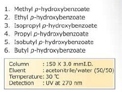 * 包含分離難度較高的苯甲酸脂類(parabens)構(gòu)造異構(gòu)體在內(nèi)的超高速分離