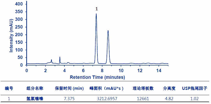 檢測(cè)波長:氫氯噻嗪檢測(cè)波長為224nm;蘆丁檢測(cè)波長為256nm。