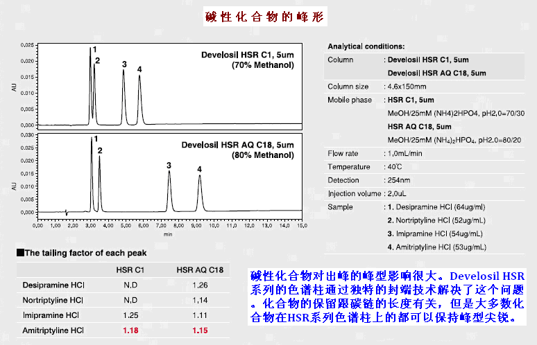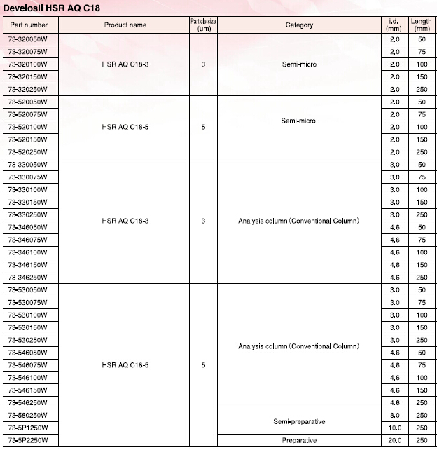 可以使保留和分離做到最大化,同時兼具耐久性和便捷性。這些特點可以廣泛的適用于科研研發(fā)和質(zhì)量控制。一般情況下,大極性的化合物使用HILIC模式的柱子,但是,我們可能更傾向于在分析的時候用類似的反相柱。因此,Develosil HSR AQ C18和C1柱,應(yīng)運(yùn)而生!