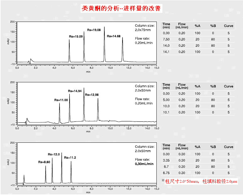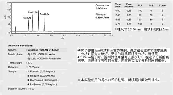 縮短分析時間可以幫助分析者提高工作效率。Develosil系列色譜柱會嚴(yán)格的控制填料的粒徑,所以通過縮小柱填料的粒徑,可以精準(zhǔn)的縮短分析時間。