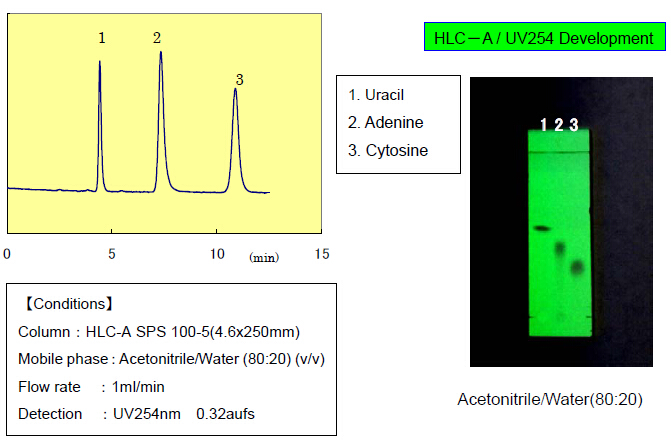 乙腈、THF和二氧六環(huán)通常溶解在水中作為流動(dòng)相使用,而不會(huì)產(chǎn)生氫鍵相互作用。在高水相的條件下,洗脫時(shí)間變快。雖然反相體系常用于水溶性化合物的分離,但是HLC硅膠更適合用于極性化合物的分離。
