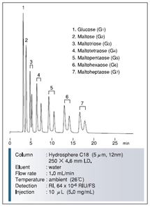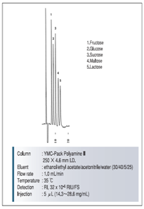 迄今為止,大多數(shù)糖類的分離介質(zhì)僅僅局限在分析級別,但是富士硅膠研發(fā)出用于制備色譜的新的氨基硅膠。當(dāng)使用高水相為流動相時,一般的氨基填料會暴露出很多問題。氨基硅膠的pH值很高,一般pH為9.0,在這樣高的pH條件下,目標化合物一般都會變性,并且會毀壞硅膠基質(zhì)的表面??紤]到這些問題,富士公司研發(fā)出新的氨基硅膠填料,稱之為NH SG硅膠。NH SG硅膠可以最小化甚至是避免上述問題,并且對糖類化合物進行更好的分離。