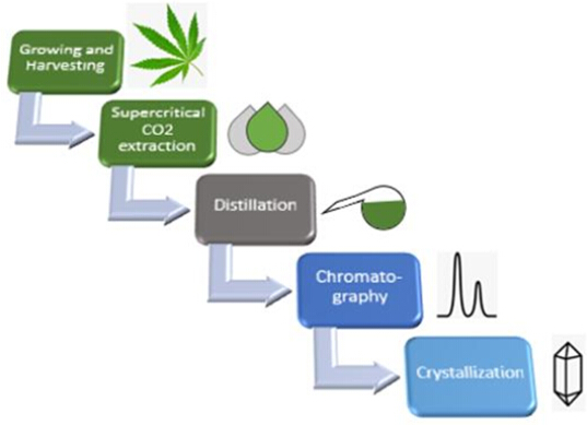 在大麻二酚(CBD)的生產中,THC及其它植物性雜質(如蠟質和色素)很難去除,需要經過一系列的預處理和純化步驟,才能從大麻中提取獲得高純度、低THC含量的CBD產品。