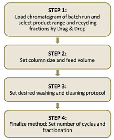 MCSGP向導軟件可自動計算回收階段的在線稀參數(shù),并可顯示所需進料的總體積、溶劑和運行時間等。