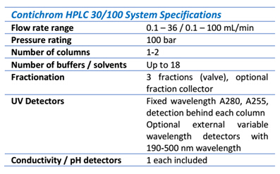 EcoPrime Twin HPLC :EcoPrime Twin HPLC為生產型連續(xù)流層析系統(tǒng),可在GMP條件下運行MCSGP功能,滿足MCSGP工藝的有效線性放大。