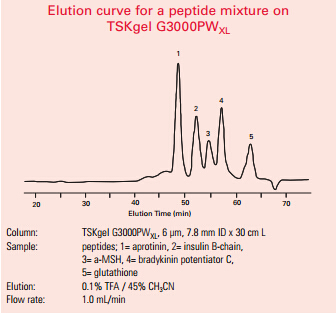 1. TSKgel PWxl柱由親水性球形聚甲基丙烯酸酯顆粒填充。