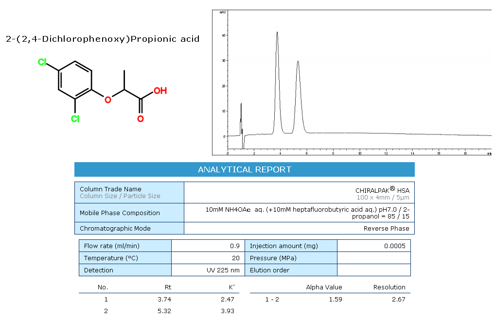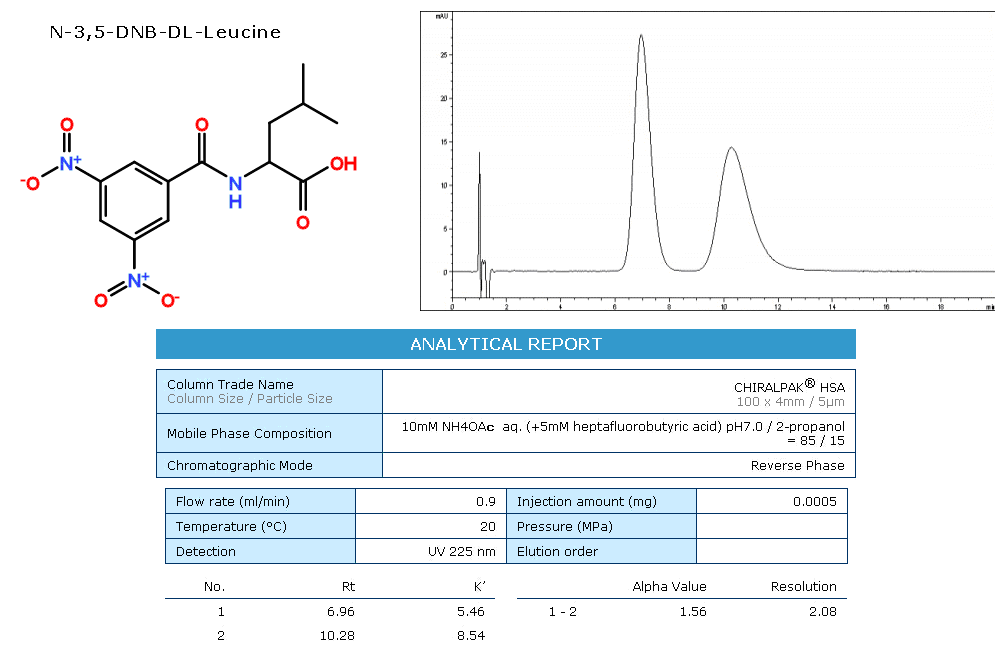 HSA為蛋白質(zhì)鍵合型手性柱,硅膠表面共價鍵合有人體血清白蛋白。適用于反相系統(tǒng)。適用分離的化合物范圍:強酸、弱酸、兩性離子和非質(zhì)子類化合物。