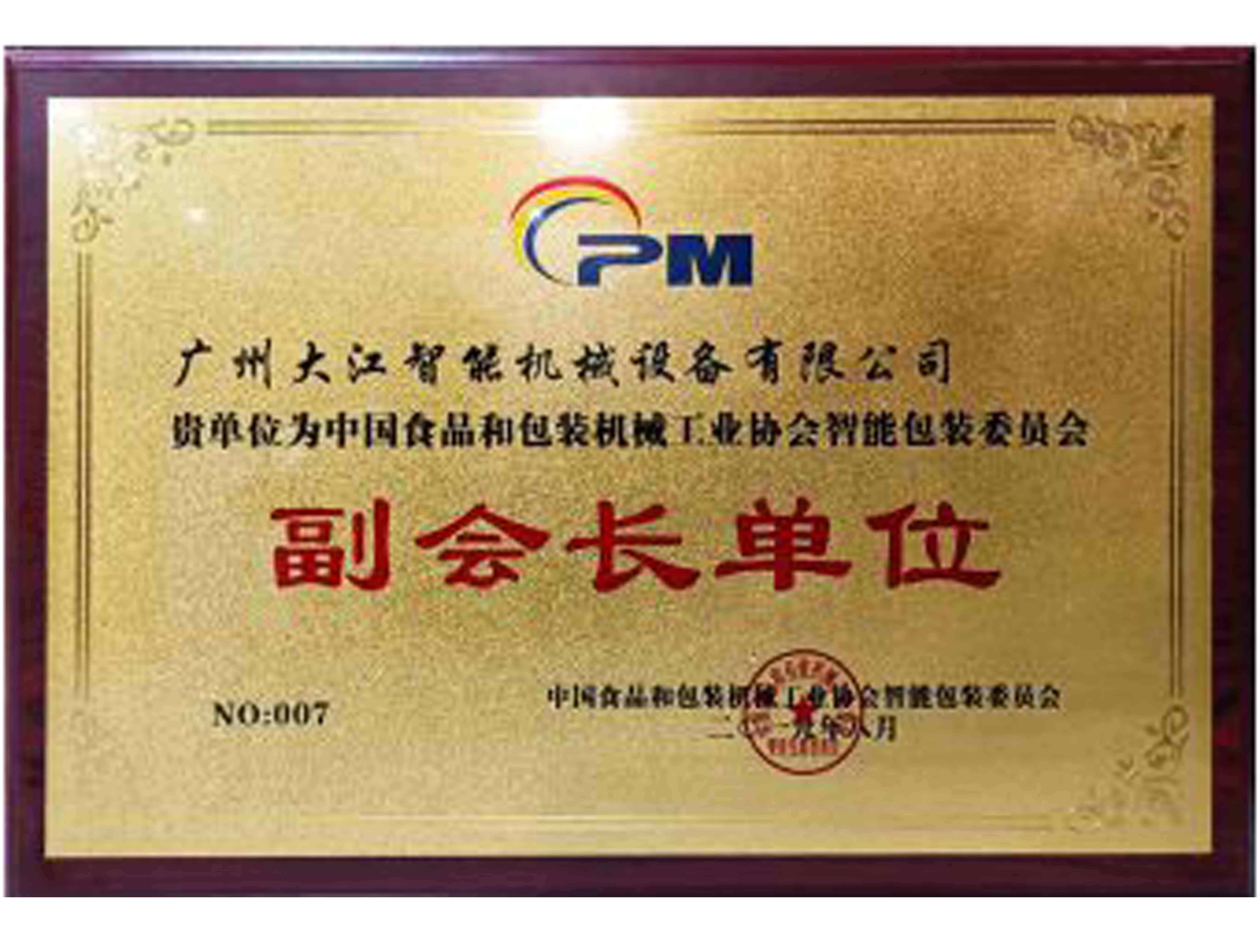 中國食品和包裝機(jī)械工業(yè)協(xié)會副會長單位