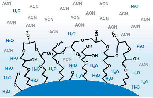 Luna HILIC柱是硅膠表面被交聯(lián)的二醇基團(tuán)覆蓋,在親水作用液相色譜(HILIC)條件下提供極性選擇性。