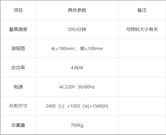 儲料、上料、理袋一體化設計,結構簡單,外觀緊湊大方,占地面小。